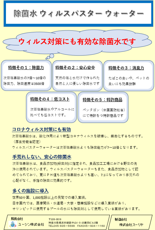 ウィルスバスターウォーター(除菌水)の販売を始めました。